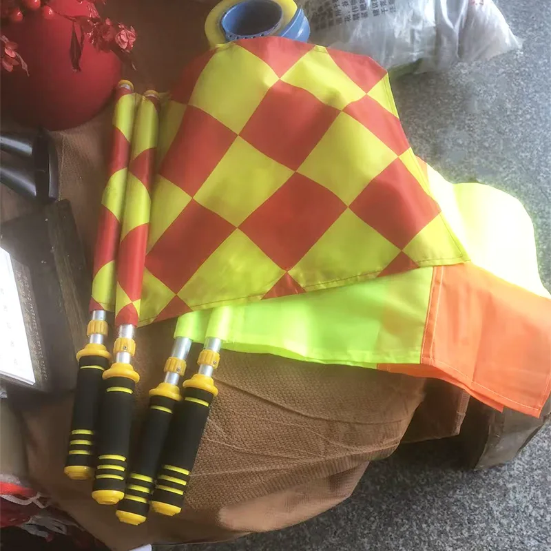 Coinníonn Jinlangte Sports caighdeáin ghairmiúla i dtéarmaí ábhar agus mothú. Tá an bhratach déanta as fabraic éadrom ach marthanach atá frithsheasmhach in aghaidh cuimilte, ag cinntiú go bhfanann sé brioscach fiú nuair a úsáidtear go minic é agus drochaimsir. Tá greim neamh-duillín ag an cuaille bratach, rud a chinntíonn go gcoimeádann an réiteoir greim daingean fiú le linn gluaiseachtaí ardluais agus gluaiseachtaí móra. Fiú le linn cluichí sínte, ní bheidh aon tionchar ag allas nó báisteach ar an oifigeachtóireacht.
