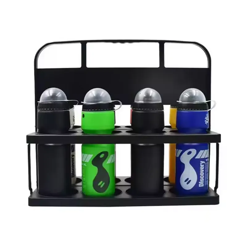 Tá sé deartha le 8 bpoll neamhspleách, agus tá na trastomhais poll calabraithe go beacht, is féidir é a oiriúnú don chuid is mó de na sonraíochtaí buidéil uisce spóirt ar an margadh. Cibé an buidéal plaisteach nó cruach dhosmálta é, is féidir é a chur go cobhsaí gan chroitheadh, glacann an bun dearadh leathnaithe agus ualaithe, in éineacht le uigeacht frith-duillín ar an dromchla. Is féidir é a shocrú go daingean ar lawns, urláir phlaisteacha nó stroighne, agus ní rachaidh sé chun cinn mar gheall ar imbhuailtí pearsanra nó gaoithe.